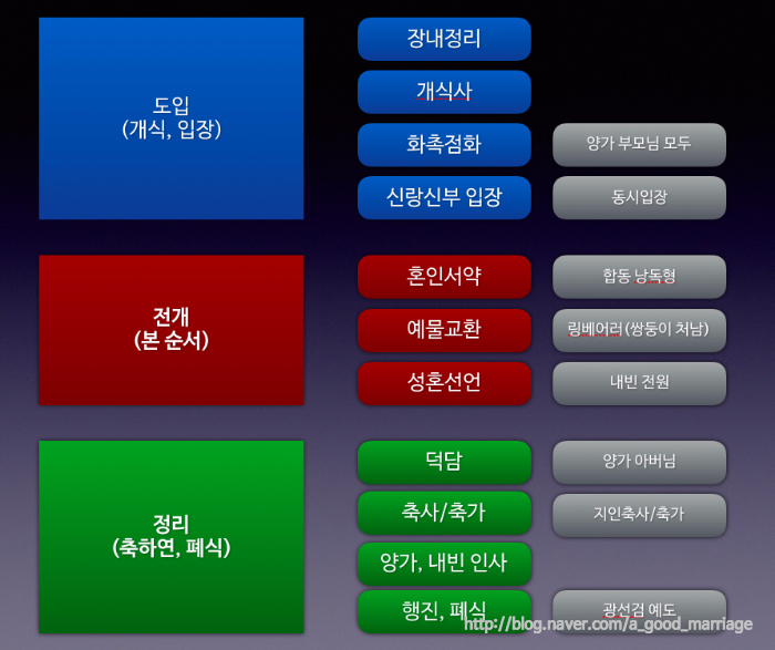 -> 중요한 기본 순서는 빠지지 않고 진행했다(혼인서약, 성혼선언)
