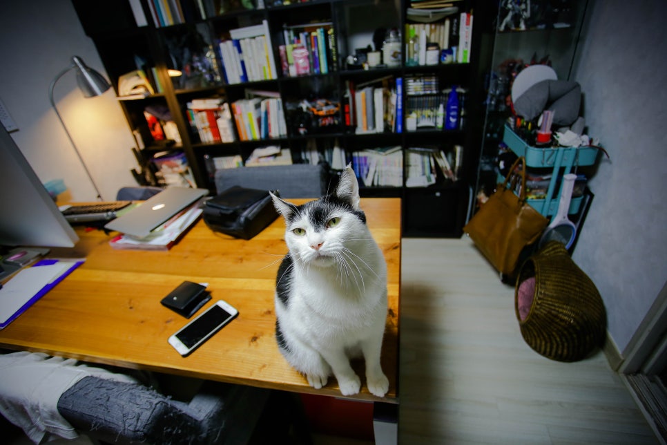 한번은 외출해 돌아오니, 책상에 놓여있던 물건들이 바닥에 다 쏟아져 있었습니다. 책상은 고양이가 주로 왔다갔다 하는 곳이니, 정리하지 않은 제 탓이려니 했습니다. 그런데 어느날 물건이 빼곡한 책상 위에서 발 하나 놓기 어려운 그 곳을 유유히 돌아다니던 녀석을 봤습니다. 사뿐한 걸음으로 책상위를 거니는 녀석을 보니 부아가 치밀더군요. 물건 틈을 비집고 조심이 다닐 수 있으면서 물건을 떨어트리며 걸어다닌 겁니다. 일부러 말이죠.