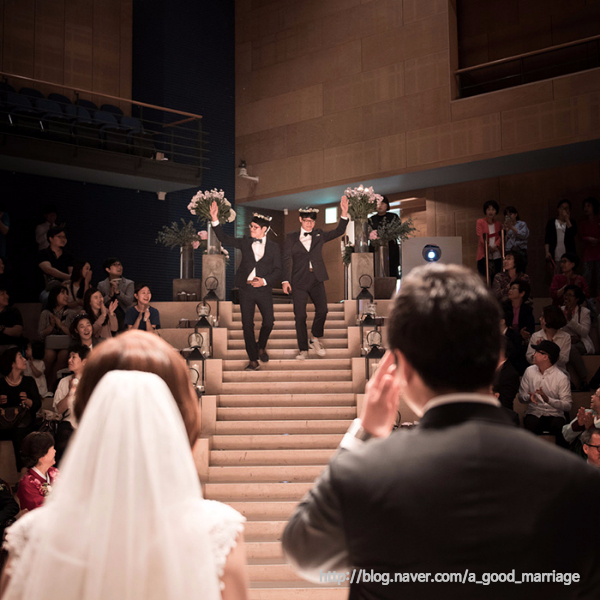오늘 저희 결혼반지는 아내의 동생들이자 제게 새로운 가족인 처남들이 가지고 입장하도록 하겠습니다.