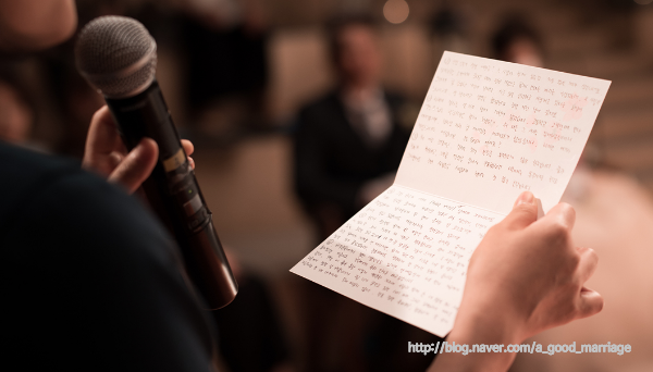 축사에 특별한 형식은 없습니다. 간단한 편지로 준비하는 사람도 있고 시 낭독을 하기도 한다. 길이는 3분 이내가 좋다. 3분을 초과하면 분위기가 늘어진다.